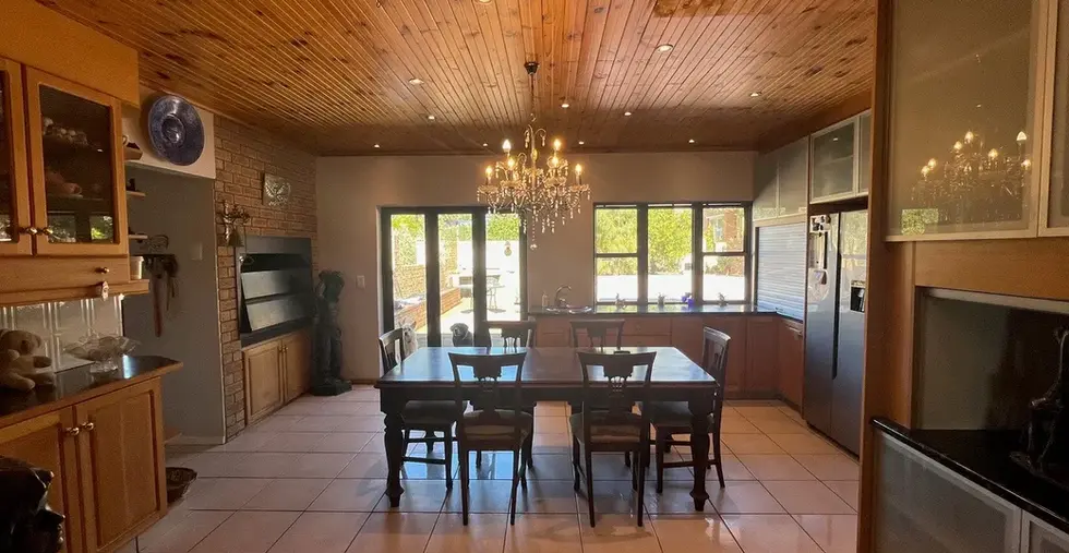 This spacious house offers everything – 4 large bedrooms, lounge with fireplace, open plan to eat- in kitchen. A massive, enclosed patio with braai and stunning views. Double garage and swimming pool, plus a nearly completed separate cottage. Very big stand for a veggie garden and dog running space is accommodated.